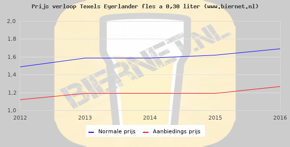De gemiddelde prijs van een fles á 0,30 liter van Texels Eyerlander is niet bekend. De gemiddelde prijs van Texels Eyerlander in de winkel is niet bekend.
