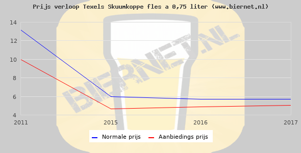 Hieronder staan de standaard prijzen van een Texels Skuumkoppe fles á 0,75 liter. Op dit moment zijn er 8 aanbiedingen van Texels Skuumkoppe.