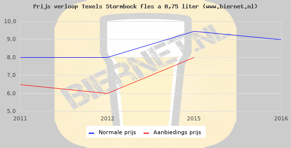 De gemiddelde prijs van een fles á 0,75 liter van Texels Stormbock is niet bekend. De gemiddelde prijs van Texels Stormbock in de winkel is niet bekend.