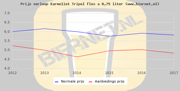 De gemiddelde prijs van een fles á 0,75 liter van Tripel Karmeliet is €6,41 (€8,55 per liter). De gemiddelde prijs van Tripel Karmeliet in de winkel is €6,47 per liter.