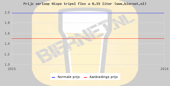 Hieronder staan de standaard prijzen van een Wispe tripel fles á 0,33 liter. Op dit moment zijn er geen aanbiedingen bekend van Wispe tripel.