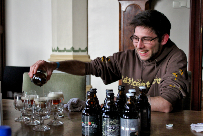 De bieren die hij mee heeft gebracht hakken er gelijk in, bieren van 12% en 13%, maar door de zoetigheid drinken ze gemakkelijk weg. Vooral de Black Sheep is een erg lekker bier, deze stout is volgens de brouwer ook goed te gebruiken als basis voor een tiramisu.