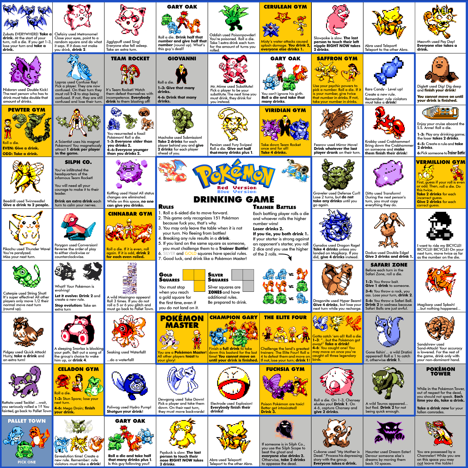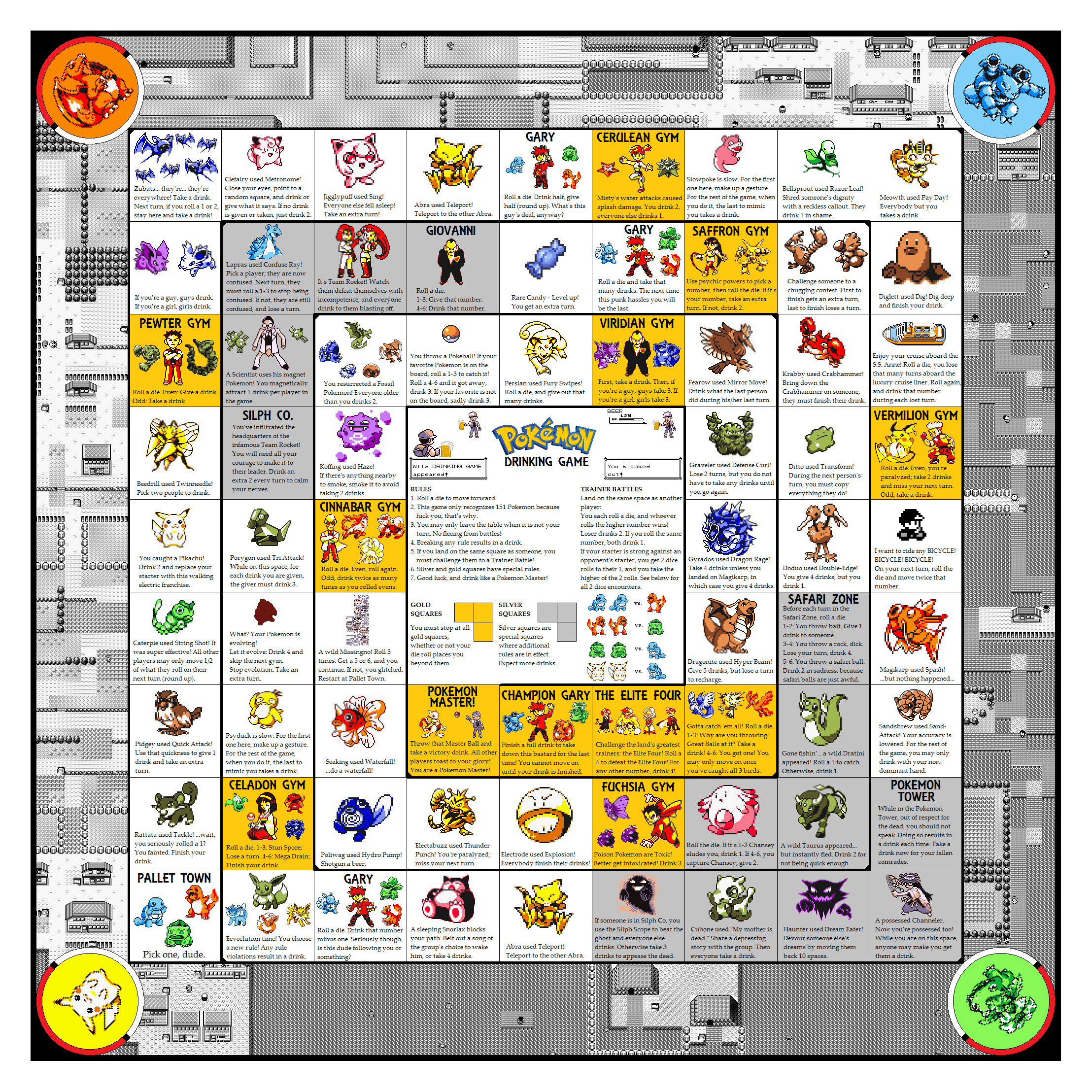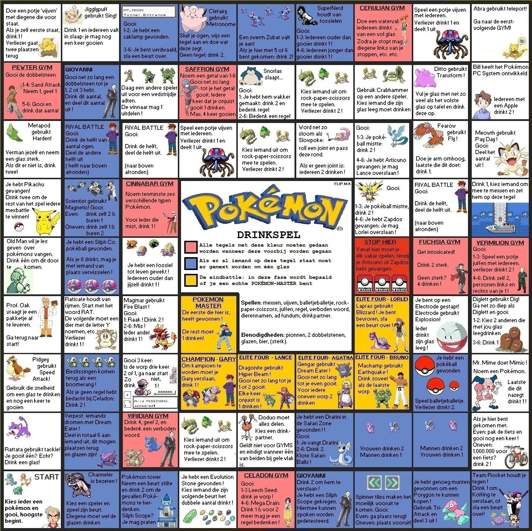 Het Pokémon drankspel heeft veel weg van Ganzenbord, maar dan met veel leukere spelregels! Ontdek met al je vrienden wie de beste Pokémon is.