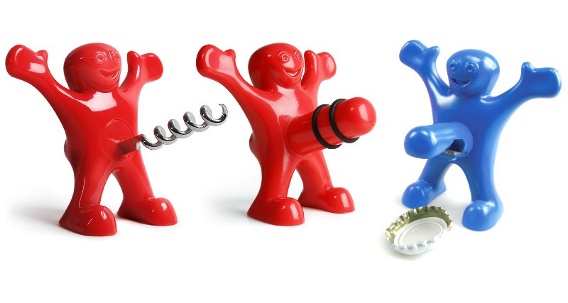De Happy Man familie is erg trots op hun mannelijkheid! Daarnaast hebben ze ook verstand van allerlei soorten flessen. De Happy Man Kurkentrekker haalt in een handomdraai de kurk uit je fles, de Happy Man Flessenstopper houdt je fles wijn langer goed. Het derde lid uit deze blije familie, de Happy Man Flessenopener, is een ster in het openen van (bier)flesjes.